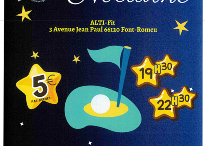 Mini golf nocturne (lundi soir) à Alti-Fit. Du 14 juillet au 18 août 2025. De 19h30 à 22h30.…