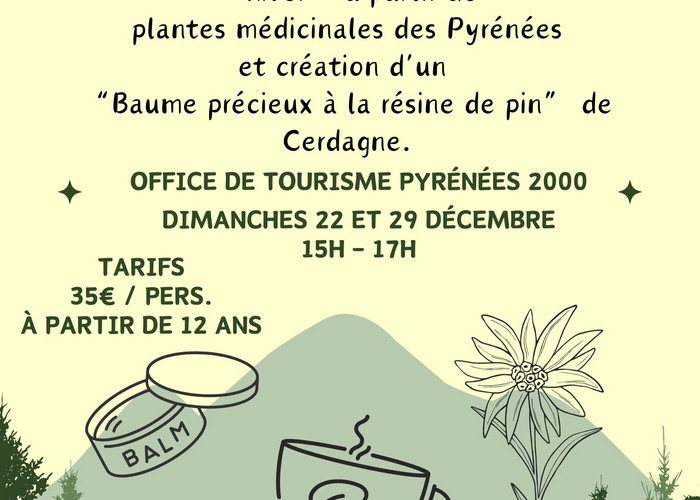 ATELIER HERBORISTERIE 15H-17H Office de Tourisme, Pyrénées 2000 Tarif : 35€/personne. A partir…