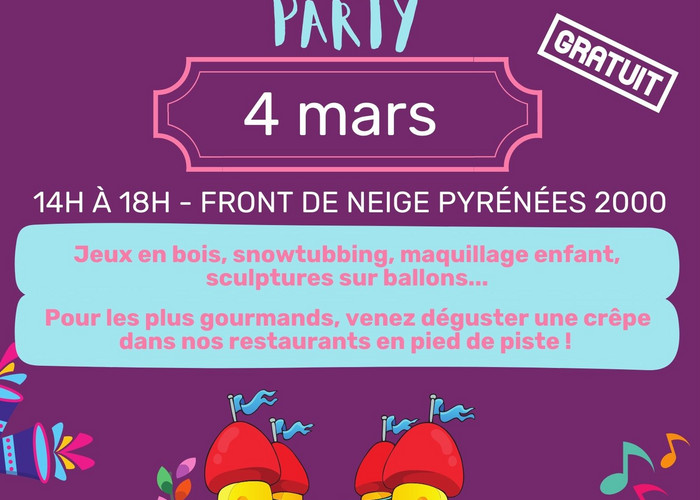 VENEZ FÊTER MARDI GRAS ! 14H - 18H Front de neige, Pyrénées 2000 Gratuit. En famille. De…