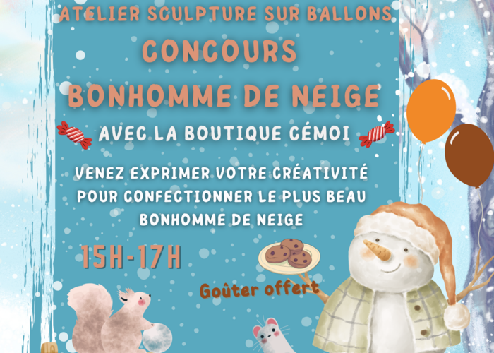 CONCOURS DE BONHOMMES DE NEIGE EN PARTENARIAT AVEC “LA BOUTIQUE CÉMOI” 15H - 17H Front de neige,…