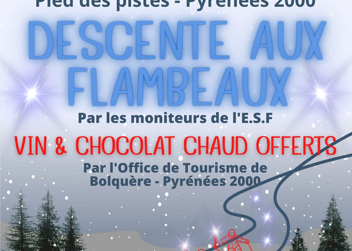 19h30 Front de neige, Pyrénées 2000 En famille Traditionnelle descente aux flambeaux des moniteurs…