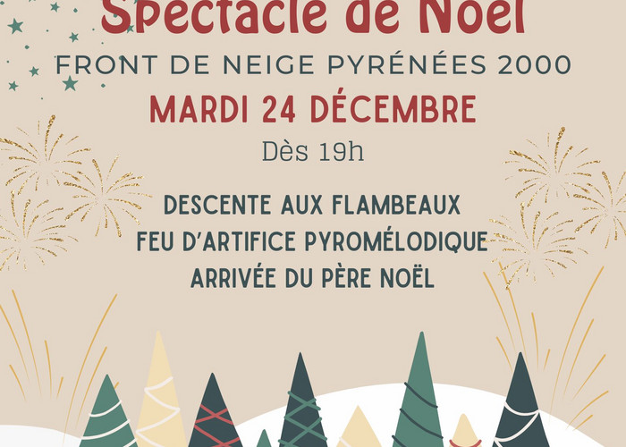 SPECTACLE DE NOËL 19h - 20h30 Front de neige, Pyrénées 2000 Gratuit. En famille. Descente au…