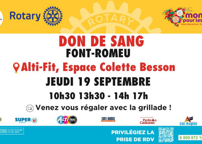 Don du sang - 19 septembre 2024 - Font-Romeu Alti-Fit, Espace Colette Besson Jeudi 19 septembre…