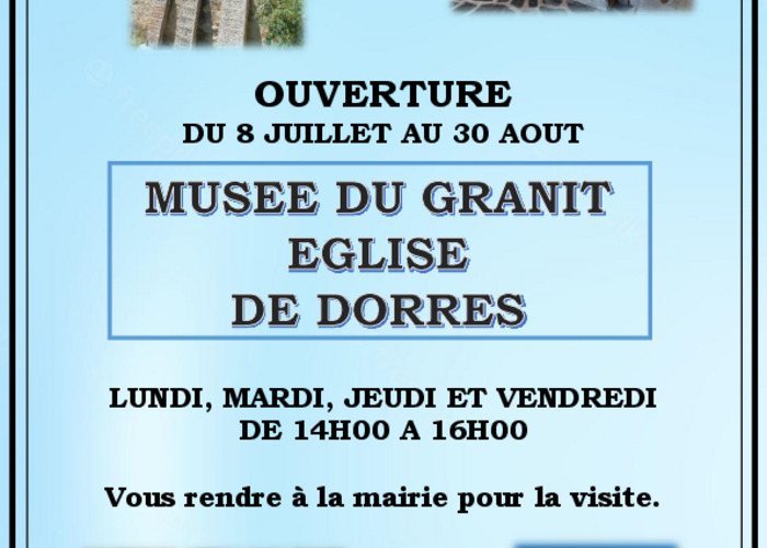 Ouverture du Musée du Granit et de l'église de Dorres à partir du 8 juillet jusqu'au 30 Août 2024. …