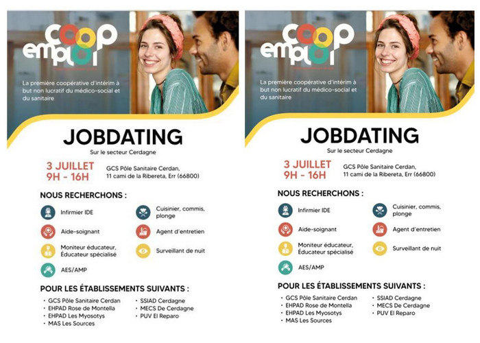 Job dating pour les établissements médico-sociaux de Cerdagne. Différents postes à pourvoir. Au…