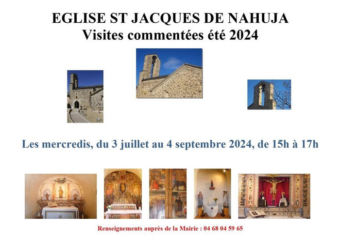 Visites commentées de l'église Saint-Jacques de Nahuja de 15h à 17h. Renseignements auprès de la…