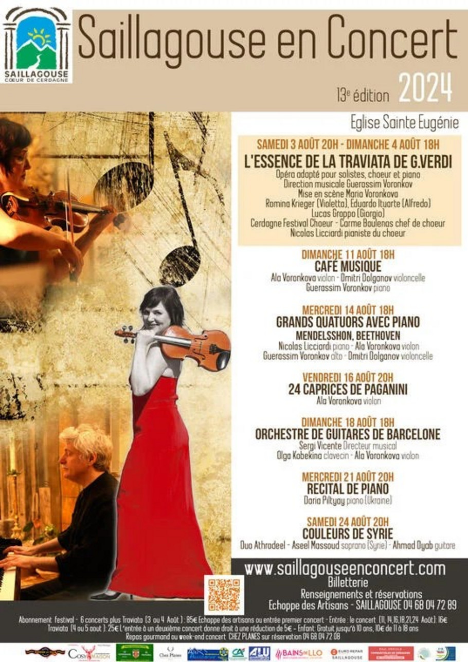 Café Musique. Ala Voronkova (violon), Dmitri Dolganov (violoncelle), Guerassim Voronkov (piano). A l'Eglise Sainte-Eugénie. Le 11/08/2024 Retour