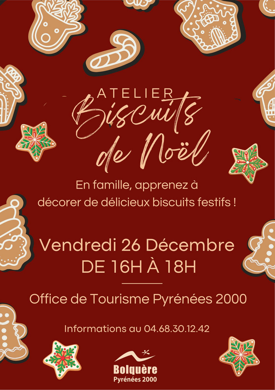 ATELIER BISCUITS DE NOËL 16h - 18h Office de Tourisme de Bolquère Pyrénées 2000 Gratuit Apprenez à décorer de délicieux biscuits festifs!