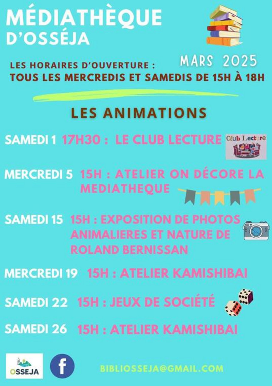 Programme des mercredis et samedis de la Médiathèque d'Osséja