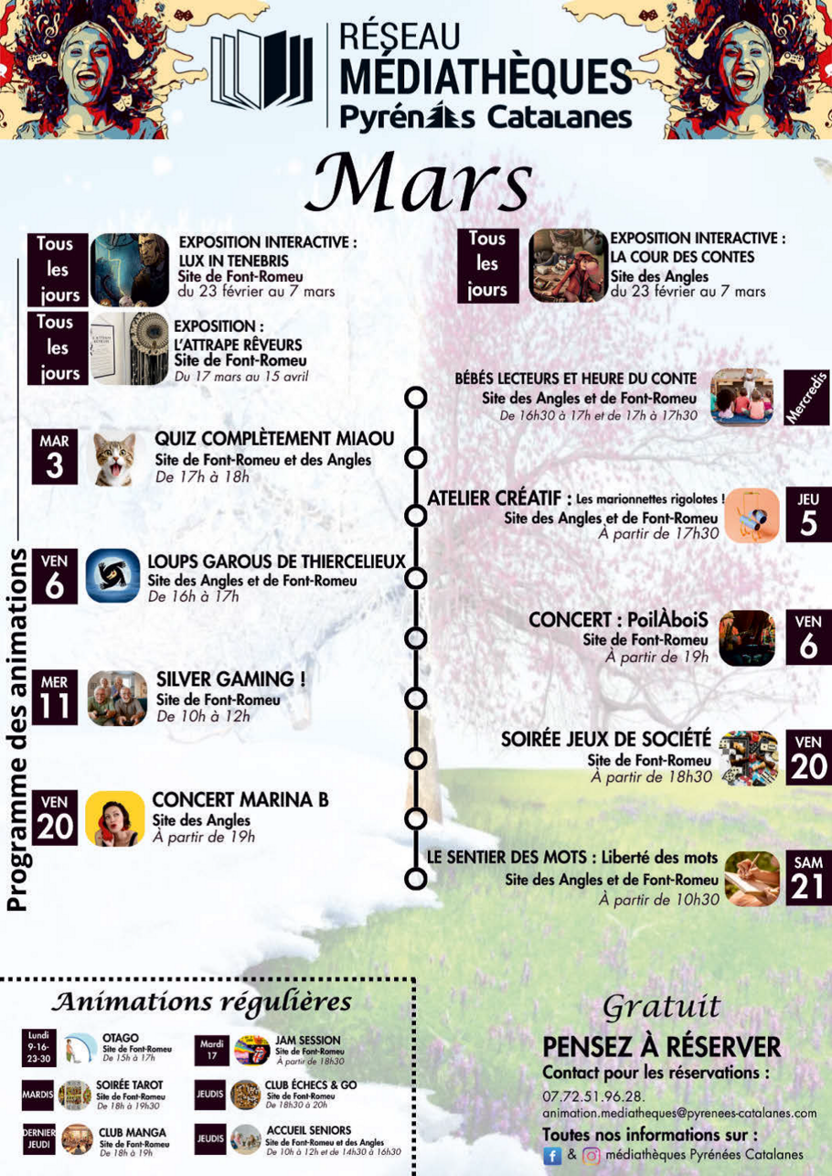 Programme du mois de mars des Médiathèque Pyrénées Catalanes -